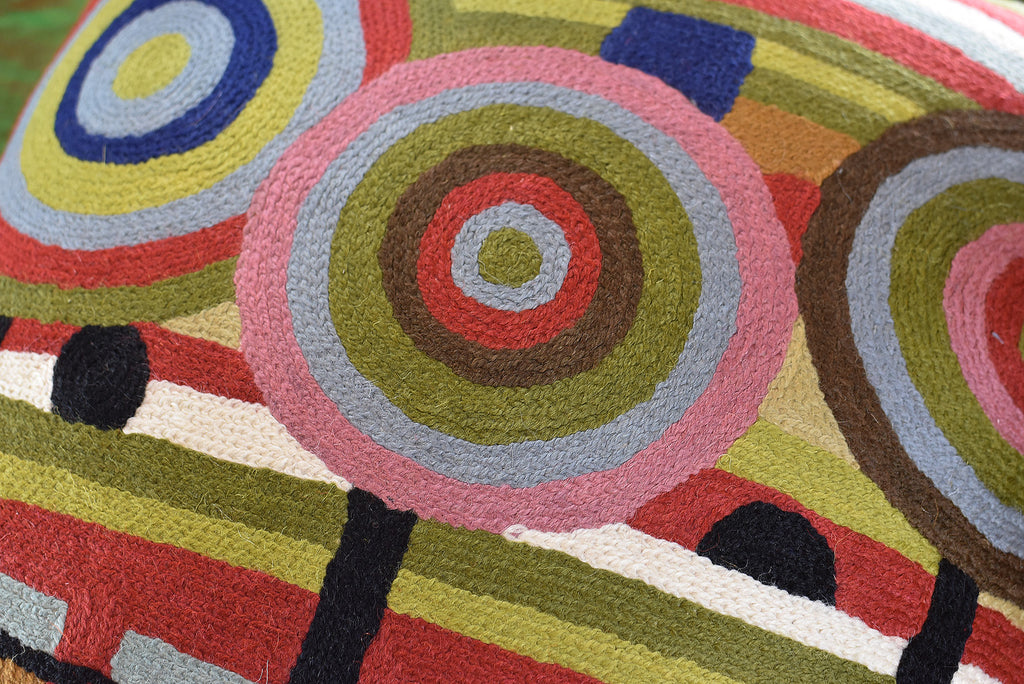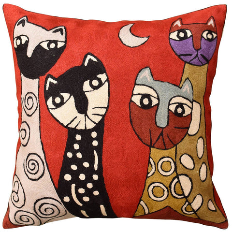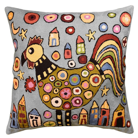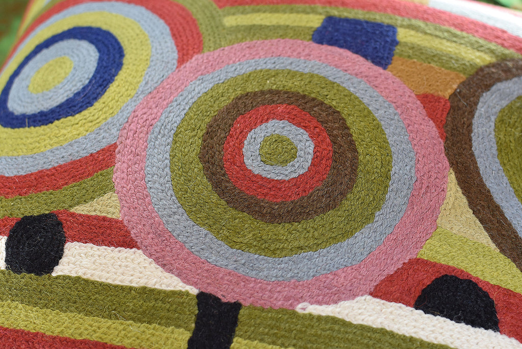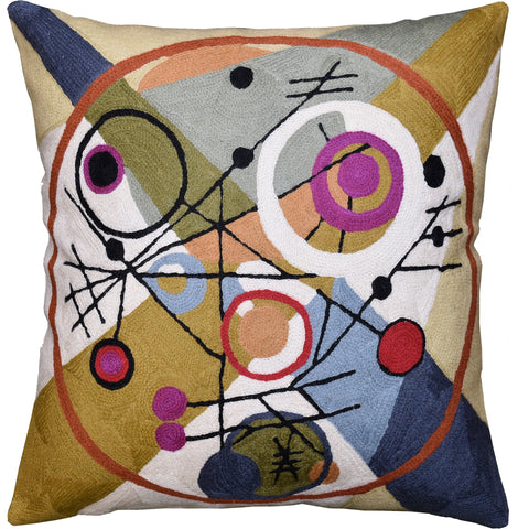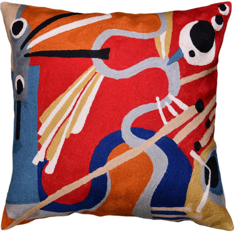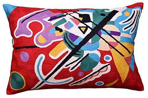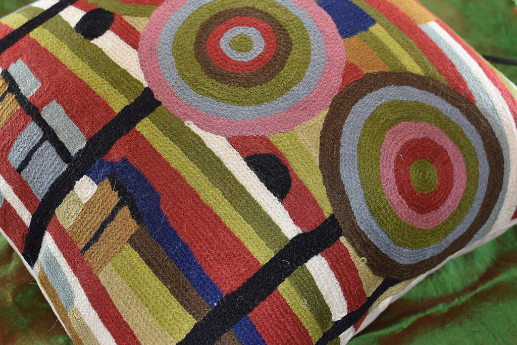 A close-up view of this abstract pillow cover allows you to see the amazing chain-stitch embroidery work of master artisans who have practiced this art their entire lives.This abstract decorative pillow cover could grace the cabin of your boat or the chair in your solarium and yet be equally as comfortable in your den.