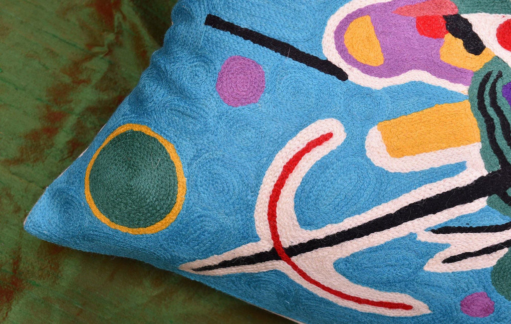 Kashmir Designs Lumbar Kandinsky Decorative Pillow Cover Blue Painting Abstract Cushion Wool HandEmbroidered 14x20